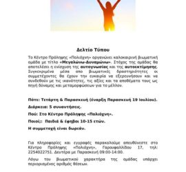Τα επιστημονικά στελέχη του Κέντρου Πρόληψης των Εξαρτήσεων και Προαγωγής της Ψυχοκοινωνικής Υγείας Λήμνου και Αγίου Ευστρατίου με το διακριτικό τίτλο «Πολιόχνη», σε συνεργασία με τον ΟΚΑΝΑ, λαμβάνοντας υπόψη το Πλαίσιο Συνεργασίας του Υπουργείου Παιδείας Δια Βίου Μάθησης και Θρησκευμάτων με τα Κέντρα Πρόληψης του ΟΚΑΝΑ, (ΦΕΚ 434, 17 Μαρτίου […]